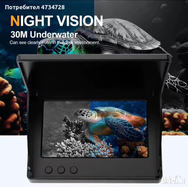 Дълбочинна/подводна камера за риба с резолюция 1080p, напълно воден, монитор 4.3-инчов LCD, нощно виждане, 30 метра дълбочина.