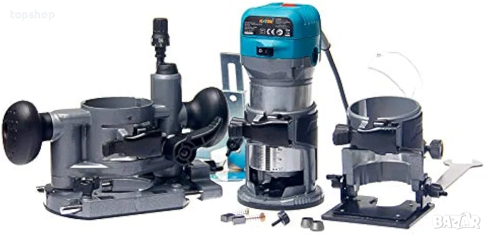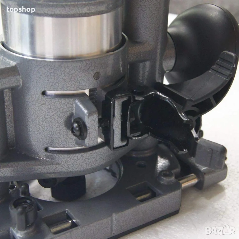 Прецизност: Система за бързо заключване и фина настройка на дълбочината на фрезоване (до 20 мм).