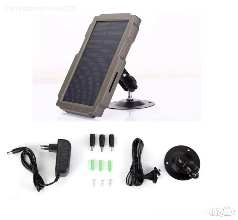 Соларен панел с вградена презареждаема литиевойонна батерия с капацитет 3000mAh. За камери, нуждаещи се от захранване на 6V или 12V.