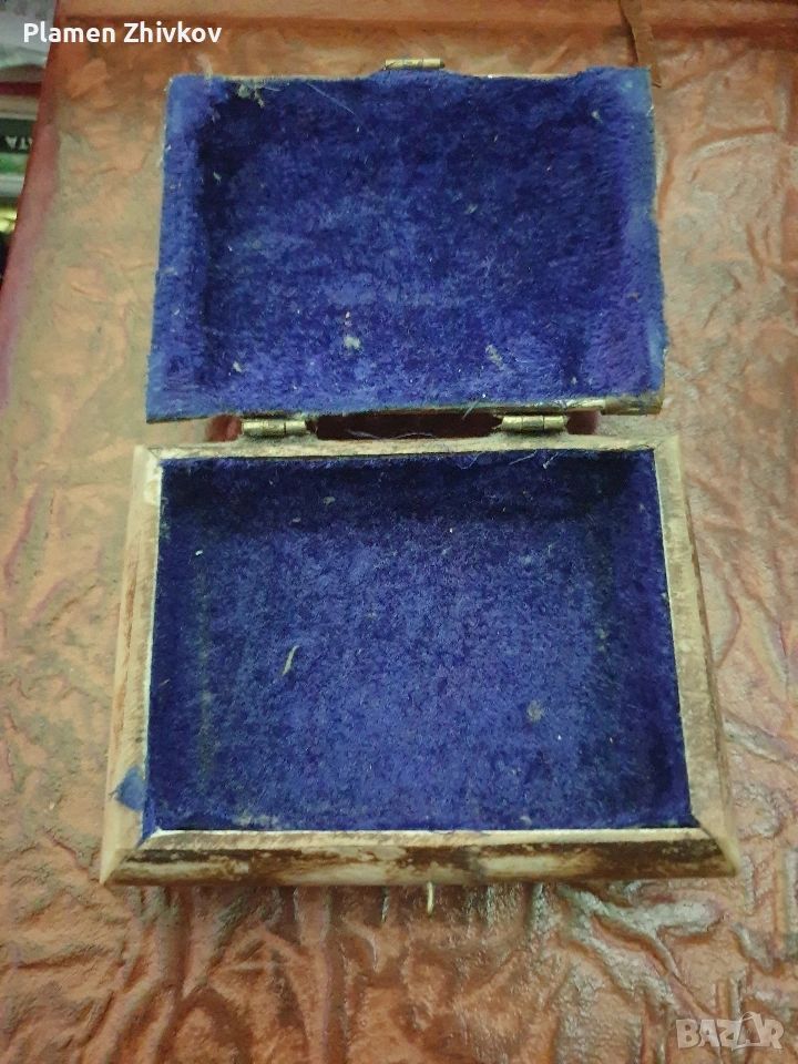 костена инкрустирана кутия облицована със син бархет → Обява 53438163