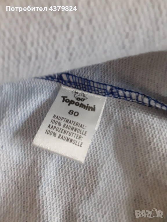 Нов немски суичър с качулка за момче р.80 см, без никакви забележки, 100% памук.