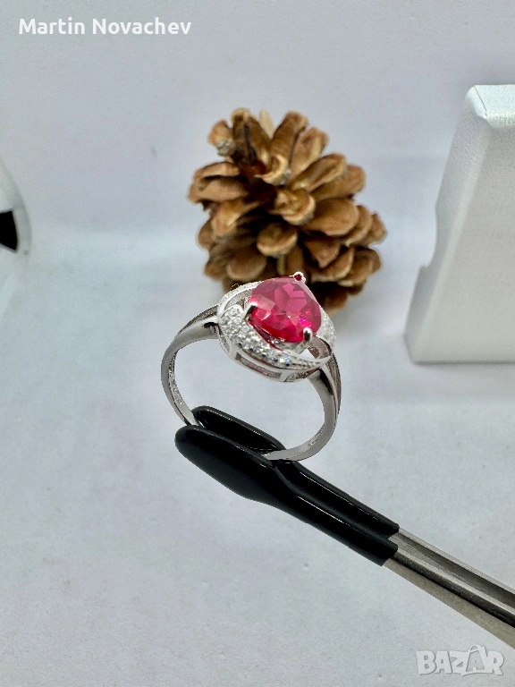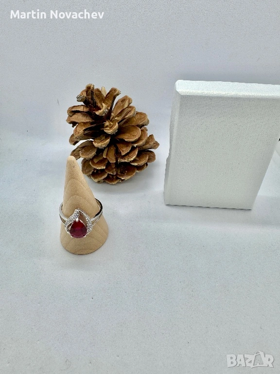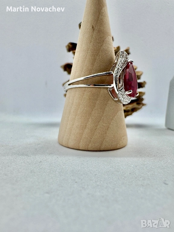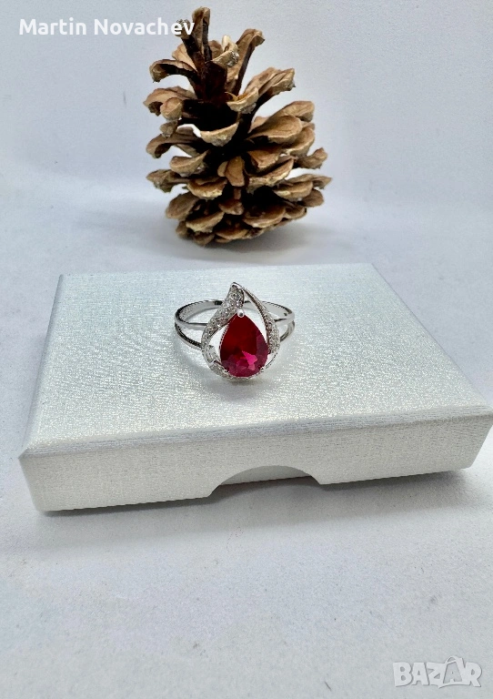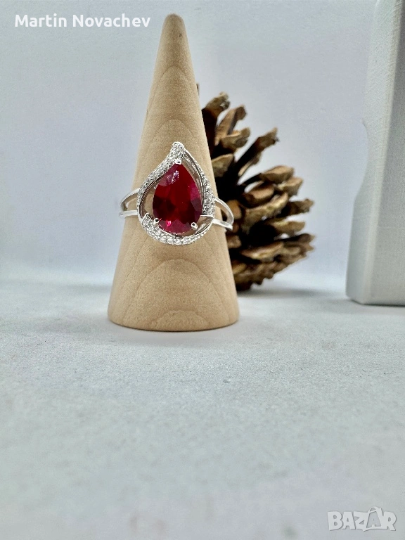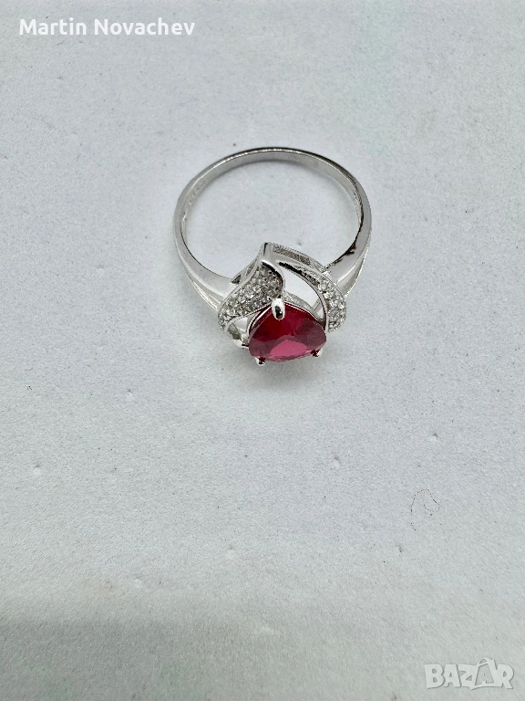 Сребърен пръстен със синтетичен рубин → Обява 53438219