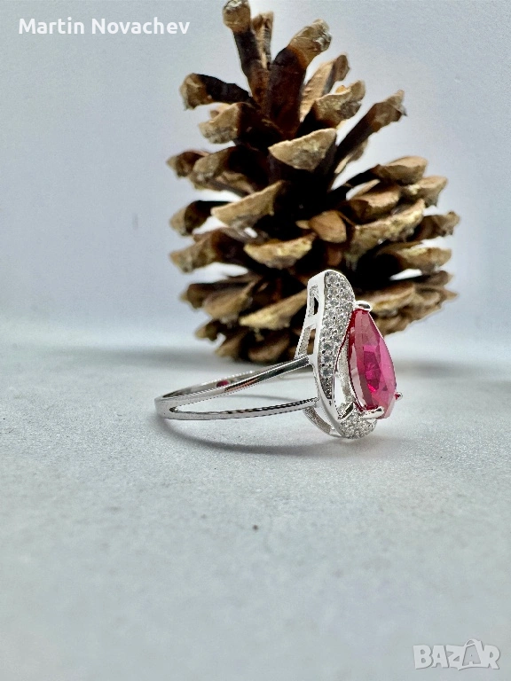 Сребърен пръстен със синтетичен рубин ✨