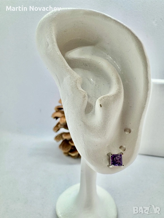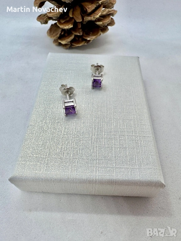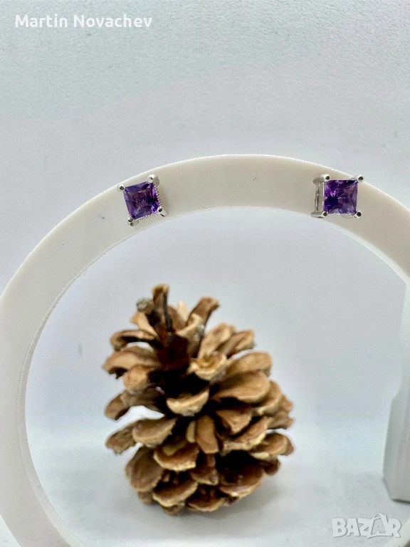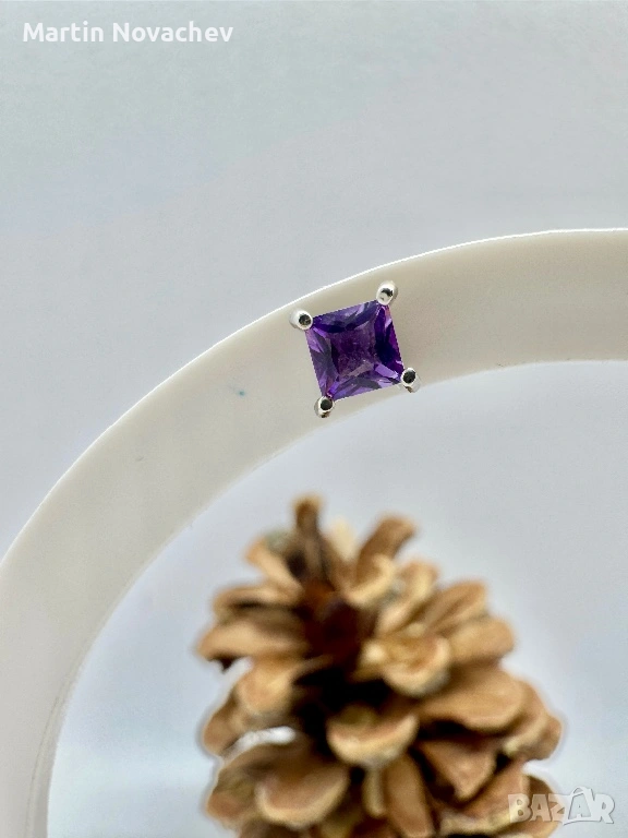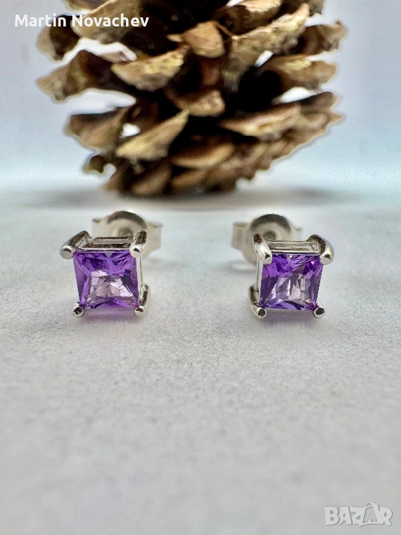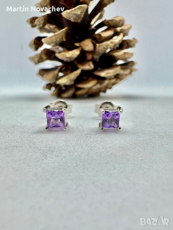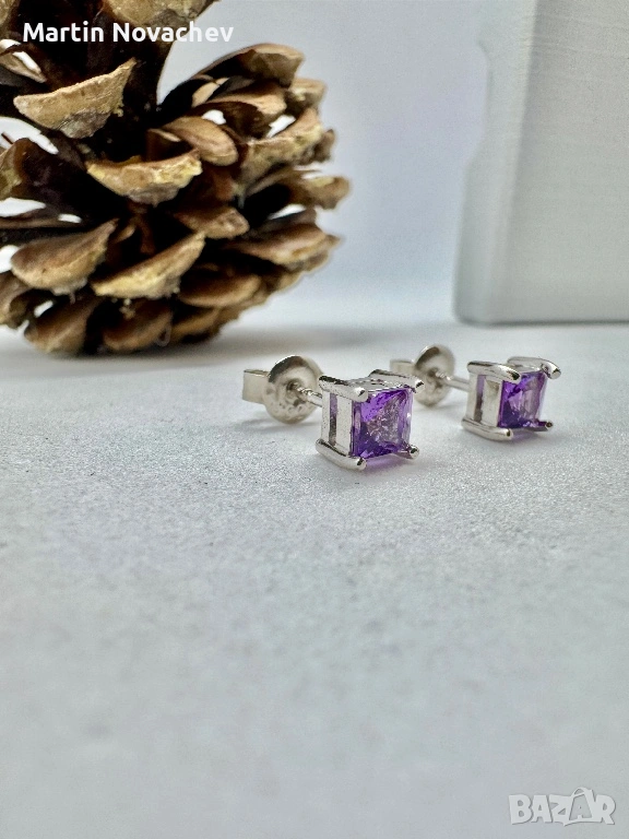 Нежни и стилни обеци с квадратен фасетиран естествен аметист в красив лилав нюанс. Изчистен дизайн с четири захвата, които подчертават блясъка на камъка и го правят подходящ както за ежедневие, така и за специален повод.