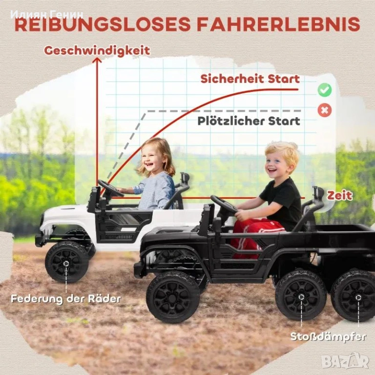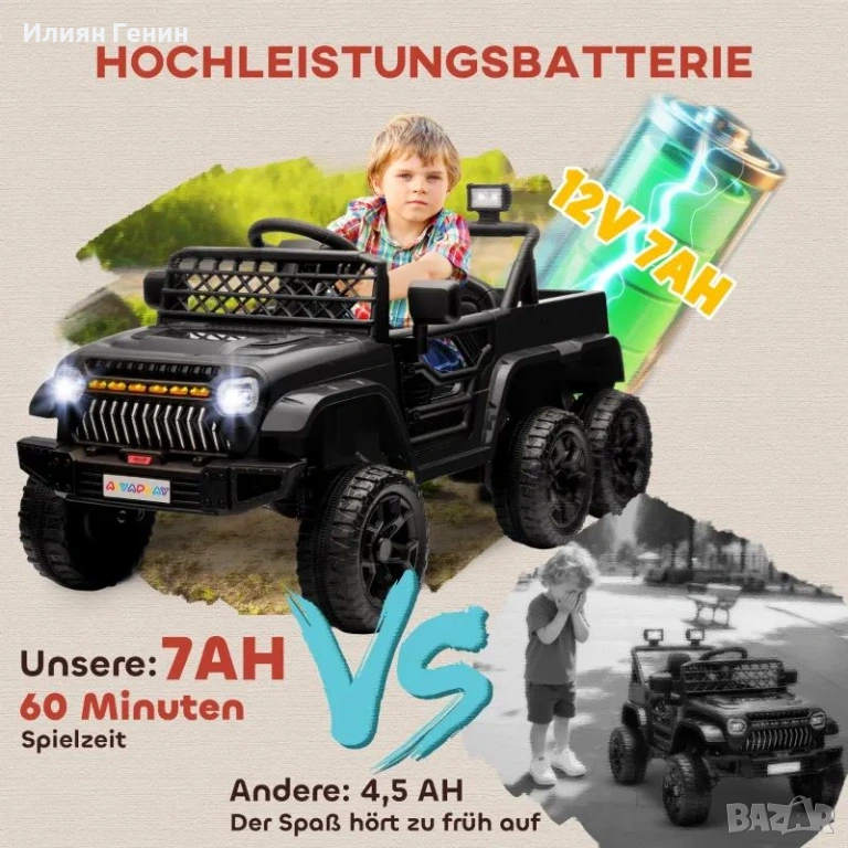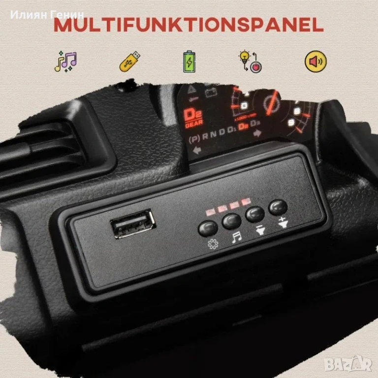 ✔ Оборудван с музика, клаксон и светлини за приятни возища