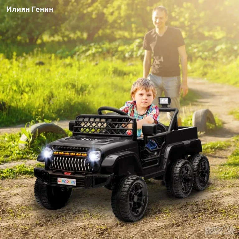 AIYAPLAY 12V Електрическа детска кола с ремарке, LED светлини, музика и клаксон, за деца на възраст 3-8 години, черна - 230.00 €.