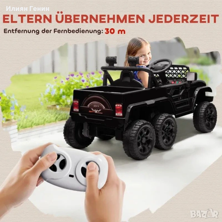 Интерактивно шофиране: С три регулируеми скорости от 2,5 до 4 км/ч, тази електрическа кола предлага уникално шофиране за деца. Може да се управлява ръчно от деца или от родители чрез дистанционно управление.
