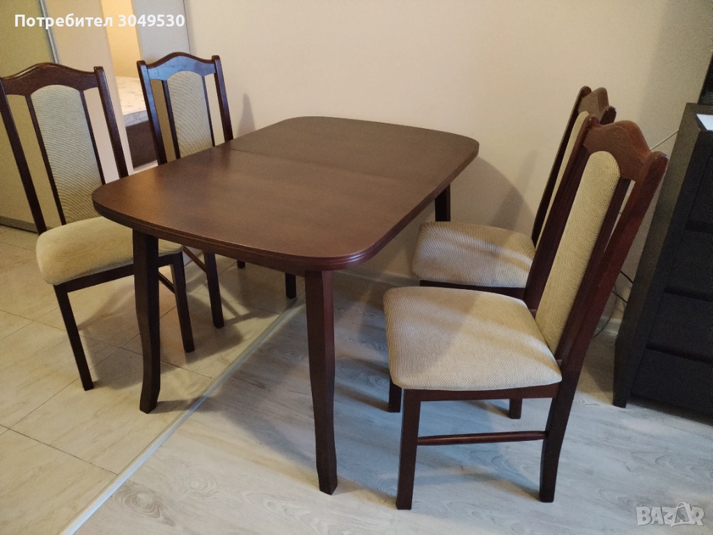 Разтегателна дървена маса с 4 стола + Холна масичка, снимка 1 - Маси - 53438390 Разтегателна дървена маса с 4 стола + Холна масичка, снимка 2 - Маси - 53438390 Разтегателна дървена маса с 4 стола + Холна масичка, снимка 3 - Маси - 53438390 Разтегателна дървена маса с 4 стола + Холна масичка, снимка 4 - Маси - 53438390 1/4