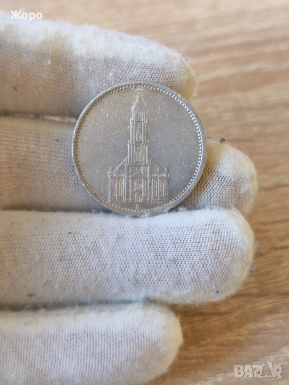 5 марки 1935 година Германия "църквата в Потсдам". Оригинална сребърна монета в отлично състояние.