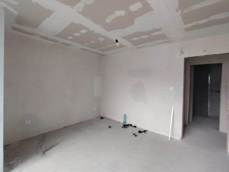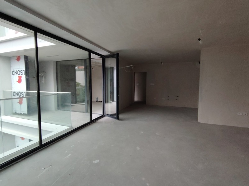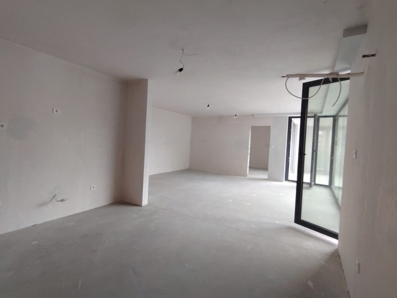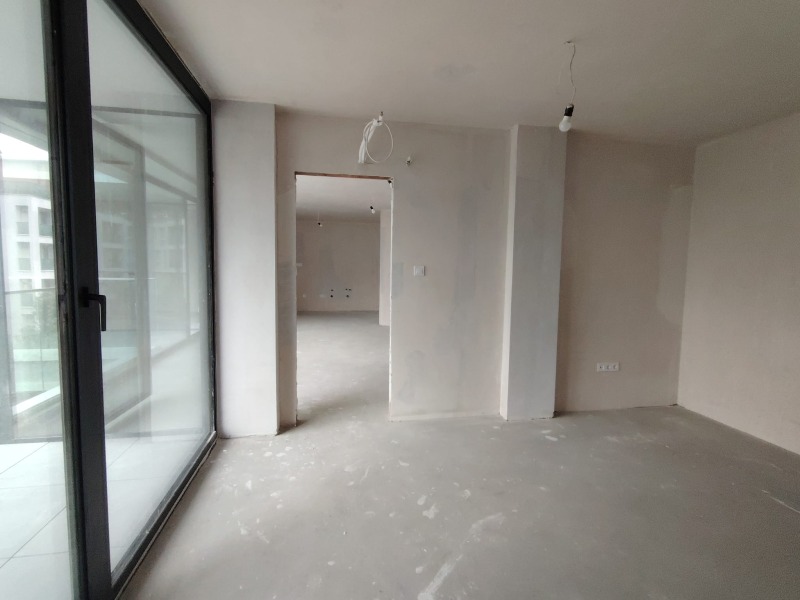 Просторна дневна с кухня 39,5 кв.м. Помещението е просторно и слънчево с изложение на юг и запад, с големи френски прозорци, осигуряващи много естествена светлина и прекрасна гледка