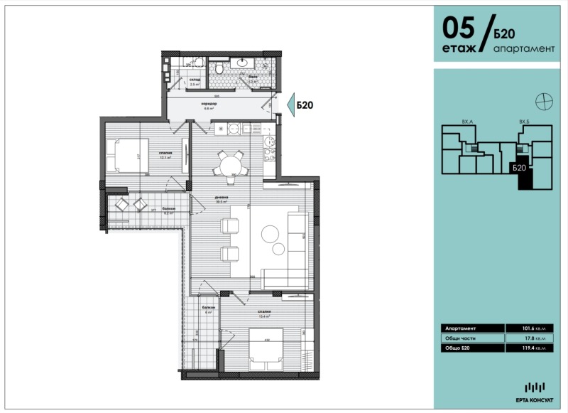 Модерен живот във Велико Търново Тристаен апартамент Б20 в Marmarley Home Park