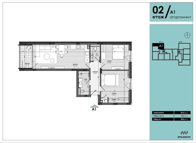 Обадете ни се и попитайте за апартамент А1. Можете да се свържете с нас на +359 888 223 444 или да ни пишете на