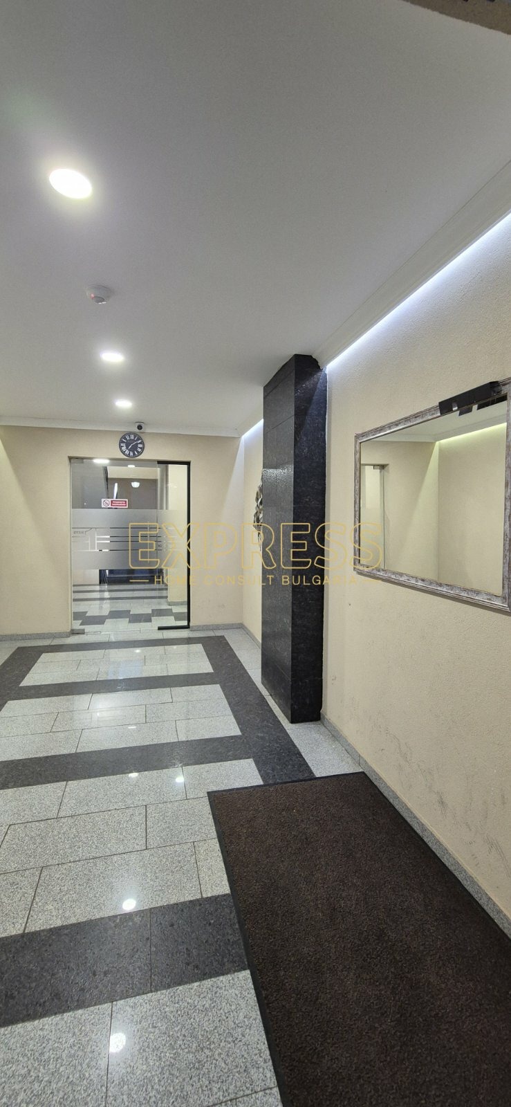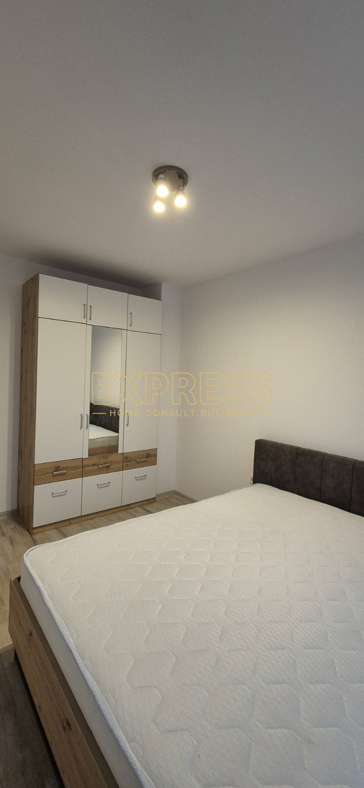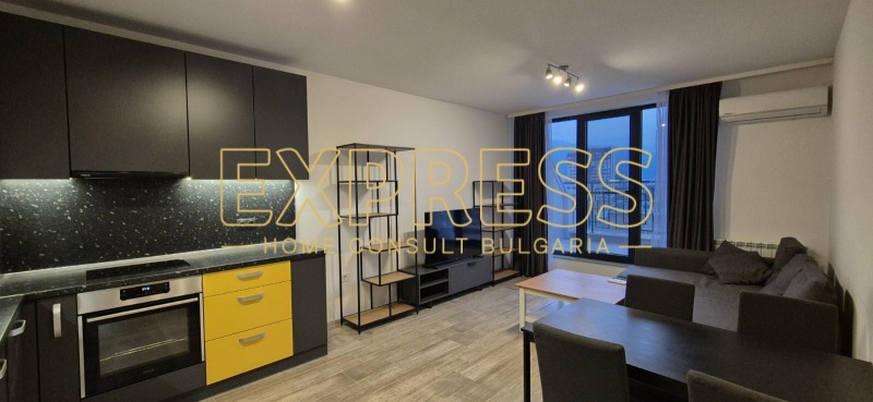 ОПЦИЯ ЗА НАЕМАНЕ НА ГАРАЖ !!! Агенция за недвижими имоти Експрес Дом Консулт България предлага на вашето внимание новообзаведен,ПАНОРАМЕН, слънчев двустаен апартамент в комплекс от затворен тип с контролиран достъп, видеонаблюдение, зелени площи, детска площадка, в близост до спирки на градския транспорт, магазини, хипермаркети, училища, детски градини. Разпределение: входно антре, хол с кухненски бокс и трапезария, спалня, баня с тоалетна, мокро помещение, два балкона. Имотът се отдава под наем напълно обзаведен. Нова кухня с вградени маркови електроуреди, включително съдомиялна, инверторен климатик от висок клас, баня с параван. Настилки: ламинат, гранитогрес, стени латекс. Имотът се намира в нова тухлена кооперация с контролиран достъп, видеонаблюдение, зелени площи, детска площадка. Възможност за наемане на подземен гараж срещу допълнително заплащане. Предимства: НОВ, в затворен комплекс, в близост до хипермаркети, училища, спирки на градския транспорт, бизнес и административни сгради. Ниски консумативни разходи и много други екстри.