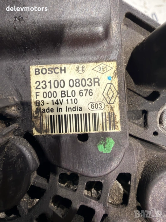231000803R алтернатор, Динамо от Dacia Dokker 1.2 TCe, двигател H5F402, 115 кс., 5 ск., 140000 км, 2013г., Дачия Докер 1.2 TCe, engine H5F402, 115 hp., 5 sp. в автоморга Delev Motors, между с. Каменар и с. Куманово гр. Варна.