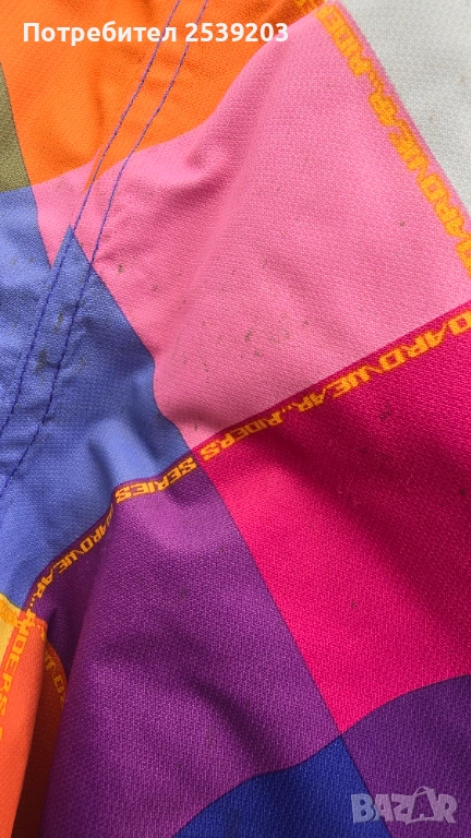 Гащеризончето има забележка - на дупето има точици-петънца, които не можаха да се изперат, иначе е здрав без никакви други забележки, но превдид че е шарен не е много фрапантно и не набива на очи, и все е пак е дрешка за снежни игри и въргаляне на вън, за това не мисля че е чак от такова съществено значение, няклоко точки на дупето. Ако все пак тови ви притеснява, не го поръчвайте а потърсете друг за вашето дете