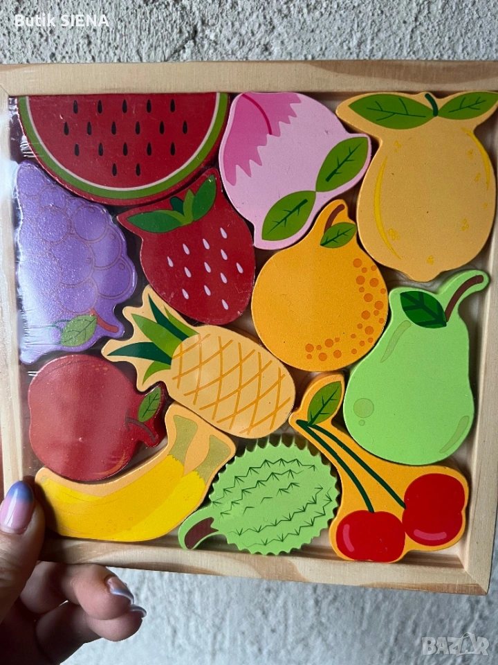 Дървен пъзел Плодове 17х17см, 12 части → Обява 53438726