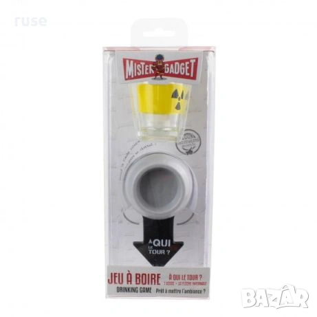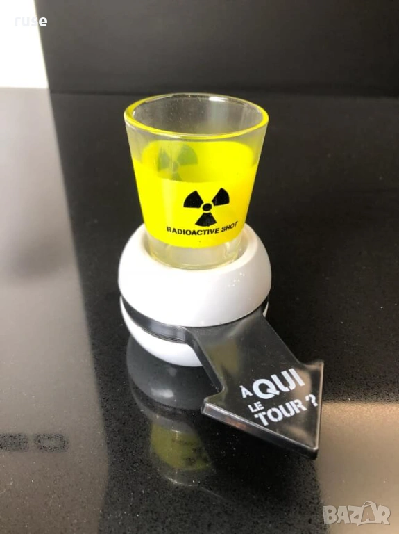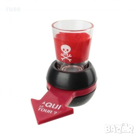 Комплекта включва платмасова въртележка със стрелка и стъклена чашка.