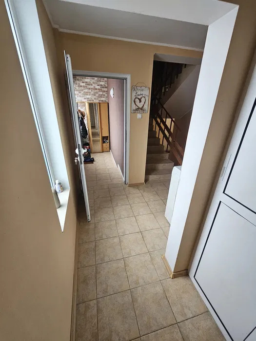 Имотът разполага с разгърната застроена площ от 95 кв.м. и двор в размер на 1,200 кв.м. Разпределението на имота е следното: Входни антрета,просторен хол с огромна тераса, с камина с горивна камера и въздуховоди, трапезария и кухненски бокс разделени с барплот,санитарен възел - баня с тоалетна, перално помещение. Огромен двоен гараж с топла връзка към дома; над него има спалня/ с част обособена за просторна гардероба и душ кабина. Спалня за гости с излаз на тераса. Втора спалня детска стая, както и санитарен възел баня с тоалетна.