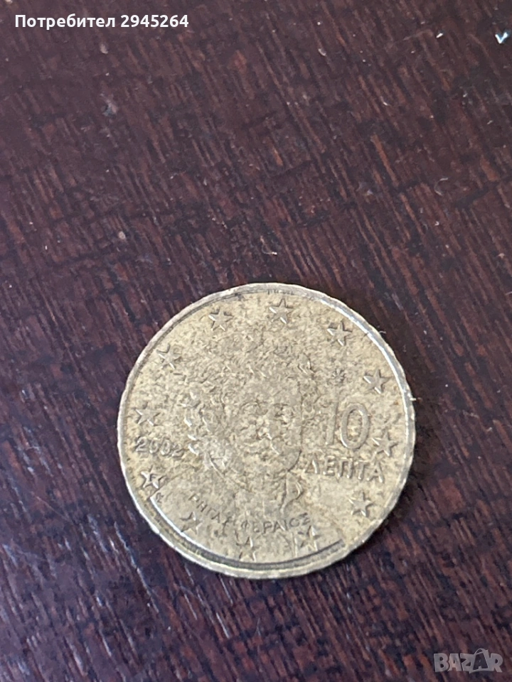 Рядка гръцка монета от 10 евроцента. С грешка. Печат F