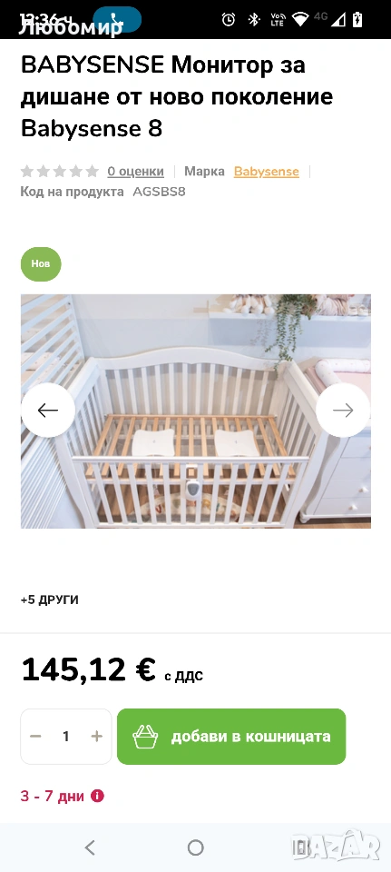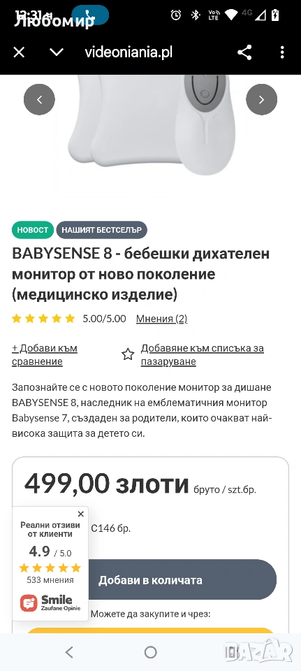 BABYSENSE 8 - бебешки дихателен монитор от ново поколение (медицинско изделие)