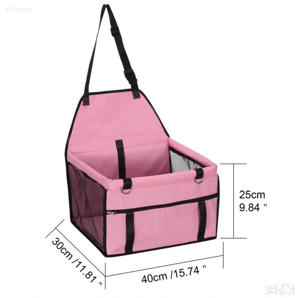 Седалка за куче за кола PETLIFE – Черна / Розова Практична и удобна седалка за домашни любимци, предназначена за безопасно пътуване с автомобил. Моделът PETLIFE предотвратява свободното движение на кучето по време на шофиране и намалява риска от разсейване на водача, което допринася за по-голяма безопасност на пътя. Подходяща е както за кучета, така и за котки, осигурявайки комфорт и стабилност по време на пътуване. Характеристики: Цветове: Черен / Розов Материал: Оксфорд 600D (здрав и устойчив) Размери: 40 × 30 × 25 см Дължина на предпазния колан: 46 см Регулируеми ленти за закрепване: 90 – 160 см Предимства: Повишава безопасността по време на път Предпазва седалките от замърсяване Лесен монтаж и стабилно закрепване Подходяща за малки кучета и котки Удобна и компактна конструкция Доставка с Еконт с опция преглед и тест до 3 работни дни.