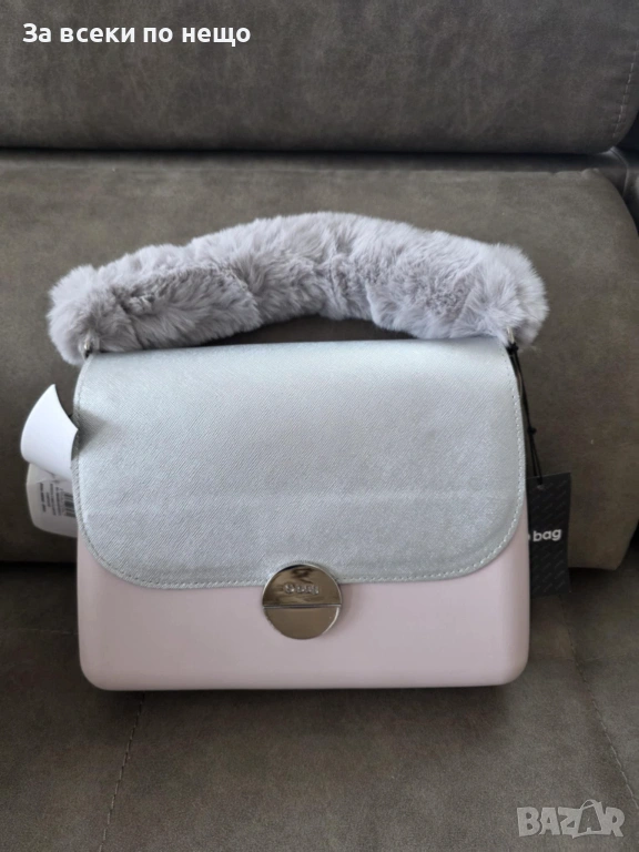 Елегантност с меко, зимно излъчване – тази дамска чантичка O Bag съчетава стилен минимализъм и модерен акцент. Нежното розово тяло е комбинирано със сребрист капак, а пухената дръжка в сиво придава уют и отличителен характер, който веднага привлича вниманието.