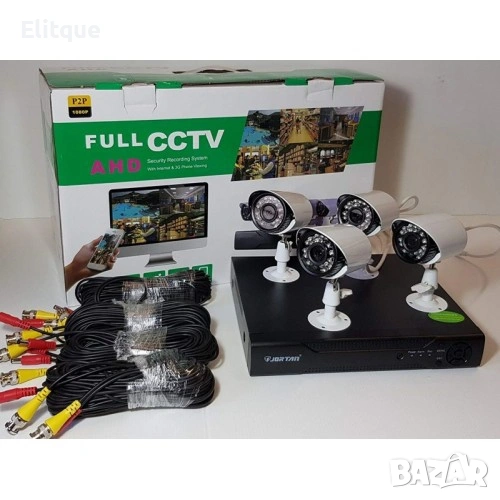 Комплект 4 камери + DVR за вътрешно / външно видео наблюдение. Възможност за: Подходяща за видео наблюдение на места с голяма площ Камерата има функция за нощно виждане, която използва съвременна инфрачервена LED технология, която Ви осигурява ясна картина дори през нощта. - наблюдение през интернет мрежата в реално време - наблюдение от личния ви телефон където и да се намирате по целия свят. - записване на видеозаписи на хард диск (не е включен в комплекта). Комплектът включва: - DVR 4-канален - VGA изход, HDMI изход, 2бр. USB входове - 4 бр. IR камери - за външно и вътрешно ползване - 4 бр. Стойки за монтиране на камерите - подвижни - 4 бр. Кабели за всяка камера - Компютърна мишка - Адаптер - захранване. Характеристика на камерите: - Mатрица - CCD - Резолюция: 3.0 Megapixel - Обектив: 3,6мм - ТВ система PAL - Светодиоди: 24 броя - Минимално осветление: 0 Lux - Цветна, водоустойчива камера - Работна температура: -20 градуса ~ 60 градуса - Автоматичен баланс на бялото - Съотношение сигнал/шум - 48dB - Захранващ адаптор: DC 12V. - Въртяща се стойка на 180 градуса. Характеристика на DVR: - 4G - Дистанционно наблюдение през интернет: до 10 потребителя едновременно през телефон или компютър - Видео компресия: Н.264 - Процесор: 1*Hi3520А - Видео запис: AHD-L - 25f/s; - Запис в най-високата резолюция - Video: 4ch input & 1ch TV, 1ch VGA, 1ch HDMI output - Audio: 4ch input & 1ch output - Space Occupation: > Video: 1080p 80G/day/ch, 720p 26G/day/ch, 960H 24G/day/ch, D1 16~20G/day/ch > Audio: 691.2M/day/ch - GUI OSD - PTZ контрол - Pentaplex функции: на живо, запис, възпроизвеждане, архивиране, отдалечен достъп - Детекция за движение (Motion Detection) - запис при засичане на движение - Алармена функция - Режим на запис: Manual / Timer / Motion / Alarm - Архивиране: вътрешен хард диск - 1 SATA порт: Max 3 TB - USB порт: 2 х USB - Възстановяване след изключване на захранването - Захранване: DC 12V.
