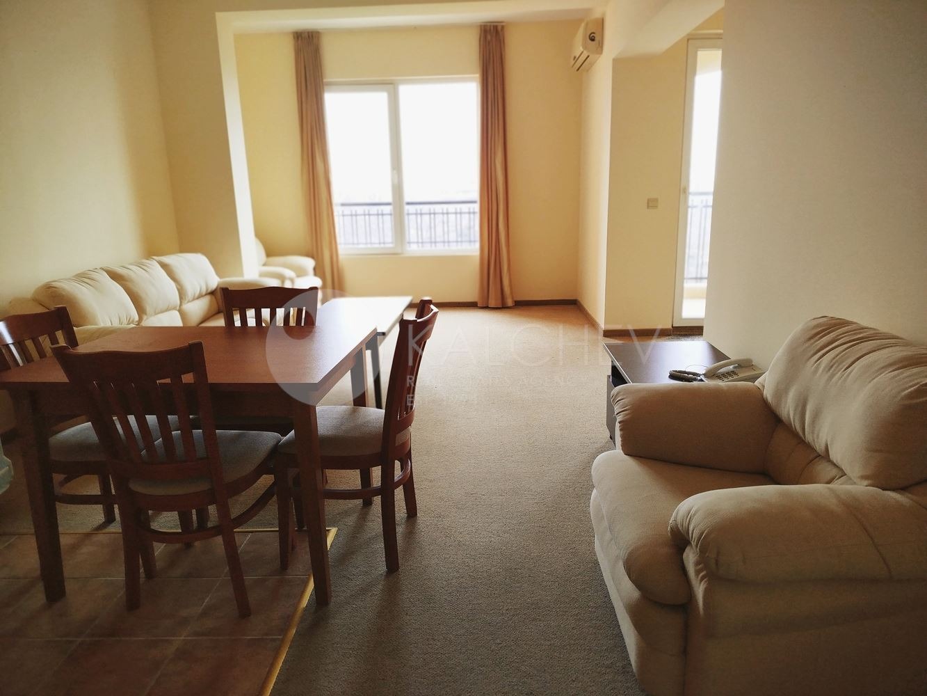 Апартаментът се състои от дневна с кухненски бокс и обособена спална зона, баня с тоалетна, коридор и балкон.