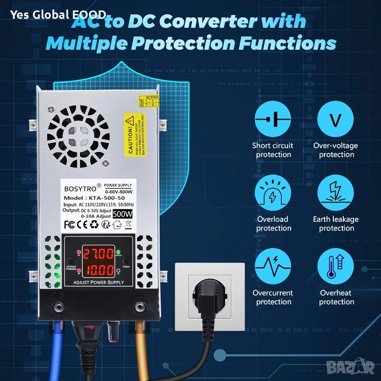 Изходно напрежение: 0-50V регулируемо