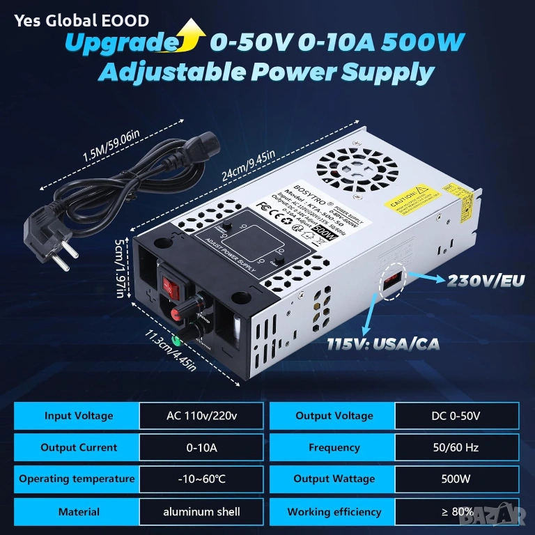 Регулируемо захранване 0-50V 0-10A 500W