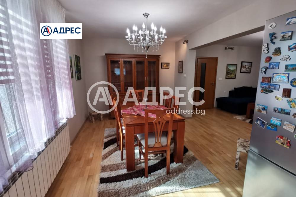 АДРЕС Недвижими Имоти дава под наем ПРИ ИЗКЛЮЧИТЕЛНИ ПРАВА тристаен обзаведен апартамент в къща на около 800 м от известния парк на гр. Сандански. Застроена площ - 125.50 кв.м, разпределена на просторна дневна с трапезария и кухненски бокс - с излаз на балкон, две спални - едната преходна откъм дневната, с балкони, санитарен възел и антре. Апартаментът заема целия втори етаж на къщата и има изложение североизток/югоизток, с прекрасни панорамни гледки към близките склонове на Пирин планина.