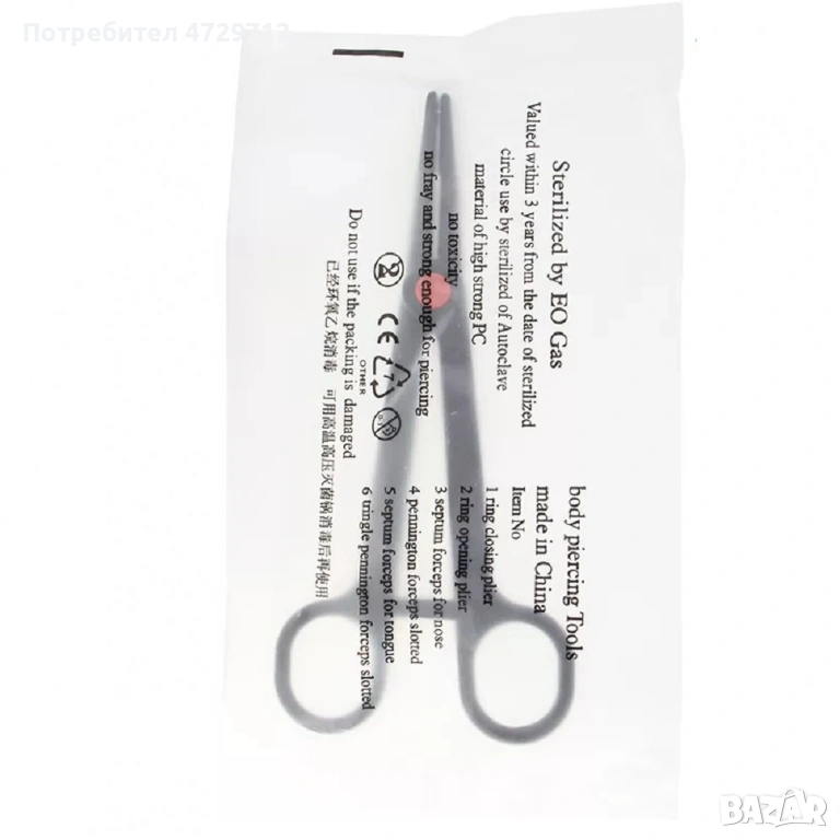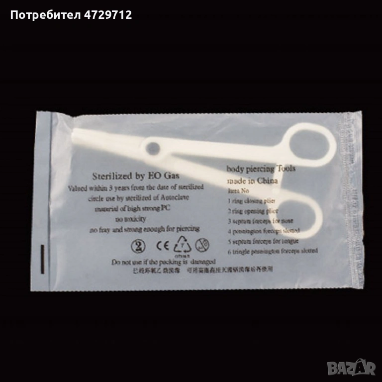 Професионален инструмент за поставяне на обици на вежда, устна, нос, език, зърно.