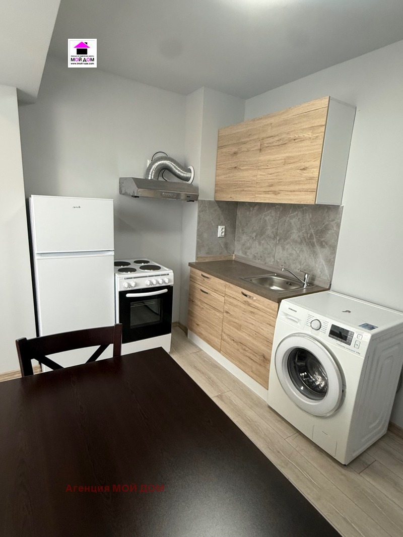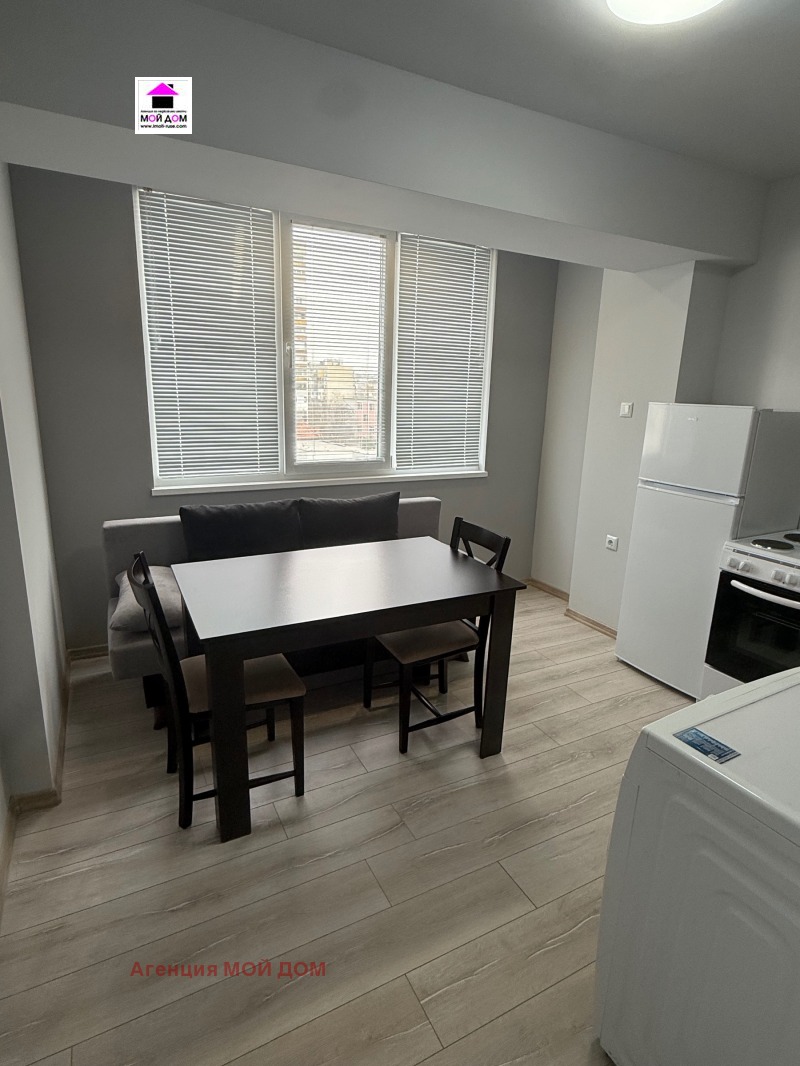 Агенция Мой Дом отдава под наем едностаен апартамент в близост до Кауфланд, състоящ се от хол-спална, кухня, баня и тоалетна. Имота е след основен ремонт, първи наемател и е обзаведен с мебели и техника