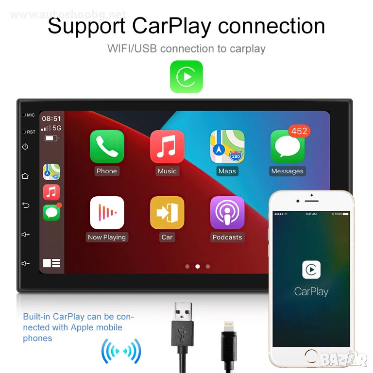 Screen Mirroring – може да свържете и показвате екрана от Вашия смартфон на мултимедията Radio – има вграден FM/AM тунер
