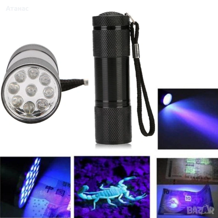 UV фенер с 9 LED диода, ултравиолетово фенерче ултравиолетов фенер