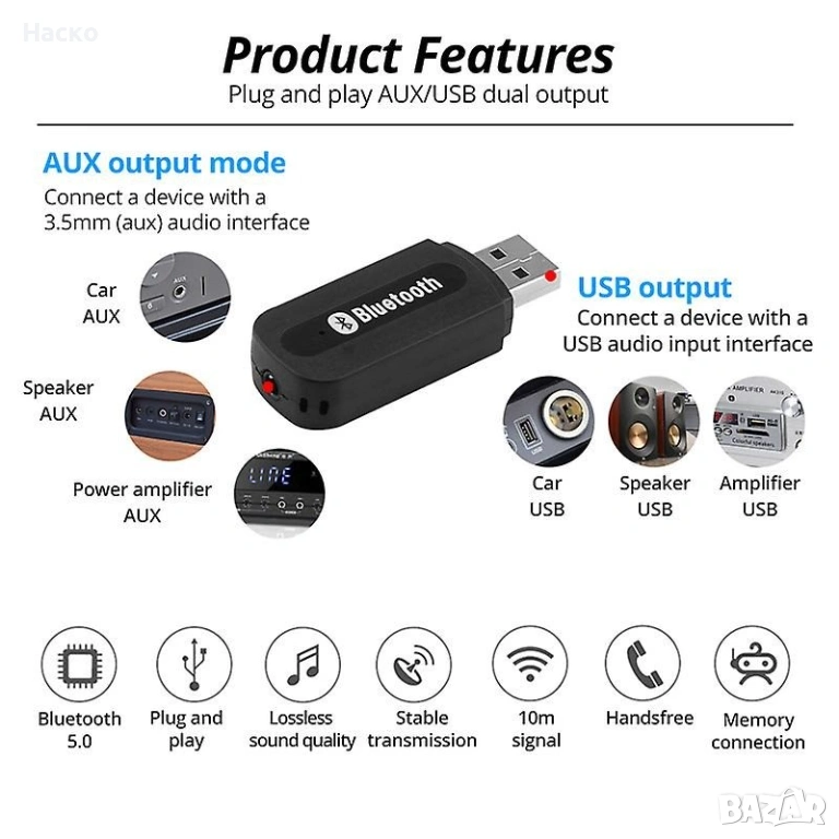 Bluetooth Audio Aux Adapter, Блутут за кола