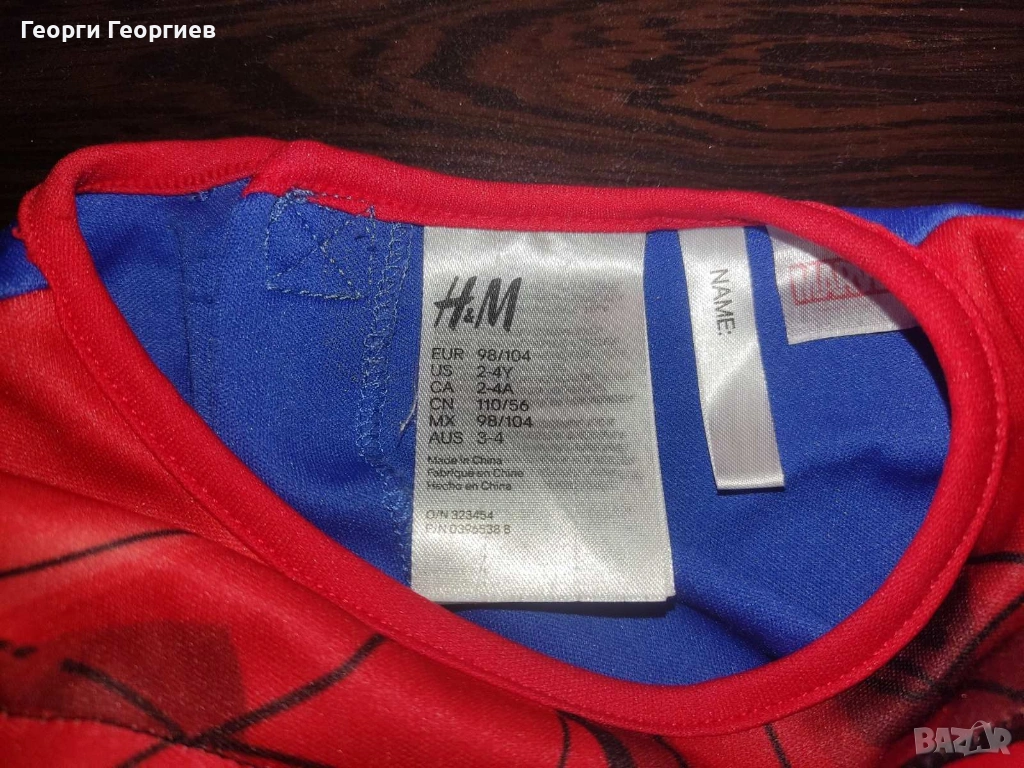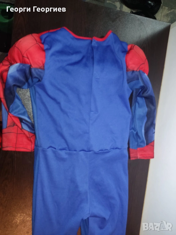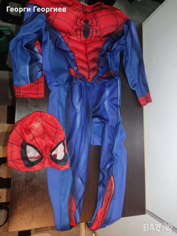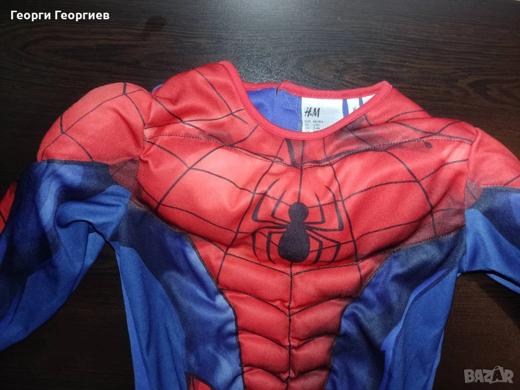Маскараден костюм на SpiderMan с подплънки оформящи обемни мускули на рамене, гърди и коремни мускули. Много ефектен и сравнително запазен има една забележка на гърба издърпано като бримка на чорапогащник. Има три снимки на забележката със светкавица и без. Цената е 10евро. Костюмчето все още го има в сайта на HM и може да видите цената му. Продава се само с лично предаване в София, Люлин 8 до 56то училище.