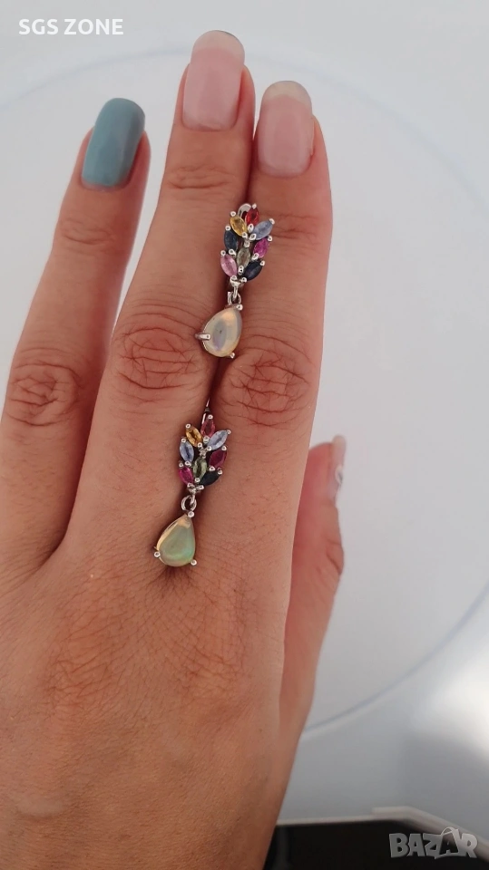 Сребърни обеци с многоцветен сапфир и опал от Тайланд. Още снимки и видеа на продукта в Instagram и Facebook sgs.zone, уебсайт sgs.zone. Можем да изпратим допълнителна информация чрез Viber. Изпращане Speedy и Эконт. Шоурум в София, Дондуков, 53. Всички продукти са със сертификати и подаръчна кутия. Продукти имат допълнителни български маркировки
