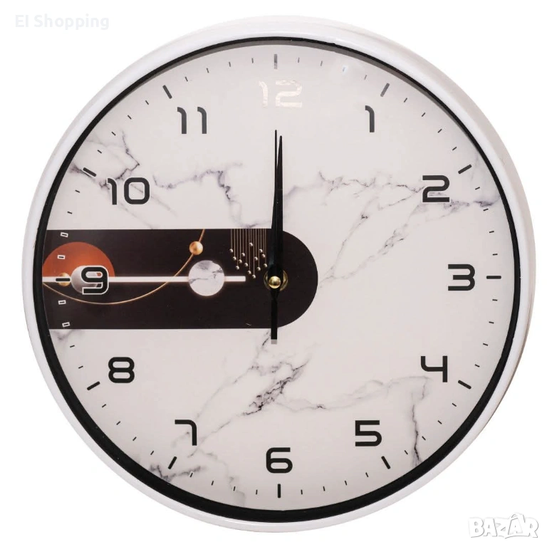 Елегантен и стилен стенен часовник с бял мраморен ефект, който придава изтънчена и модерна визия на всяко пространство. Дизайнът съчетава класическа кръгла форма с деликатна мраморна текстура и декоративен акцент в централната част, който добавя артистичен и съвременен характер.