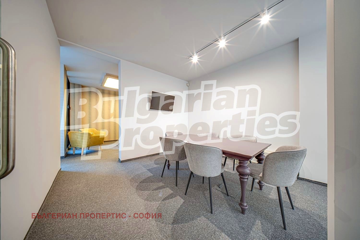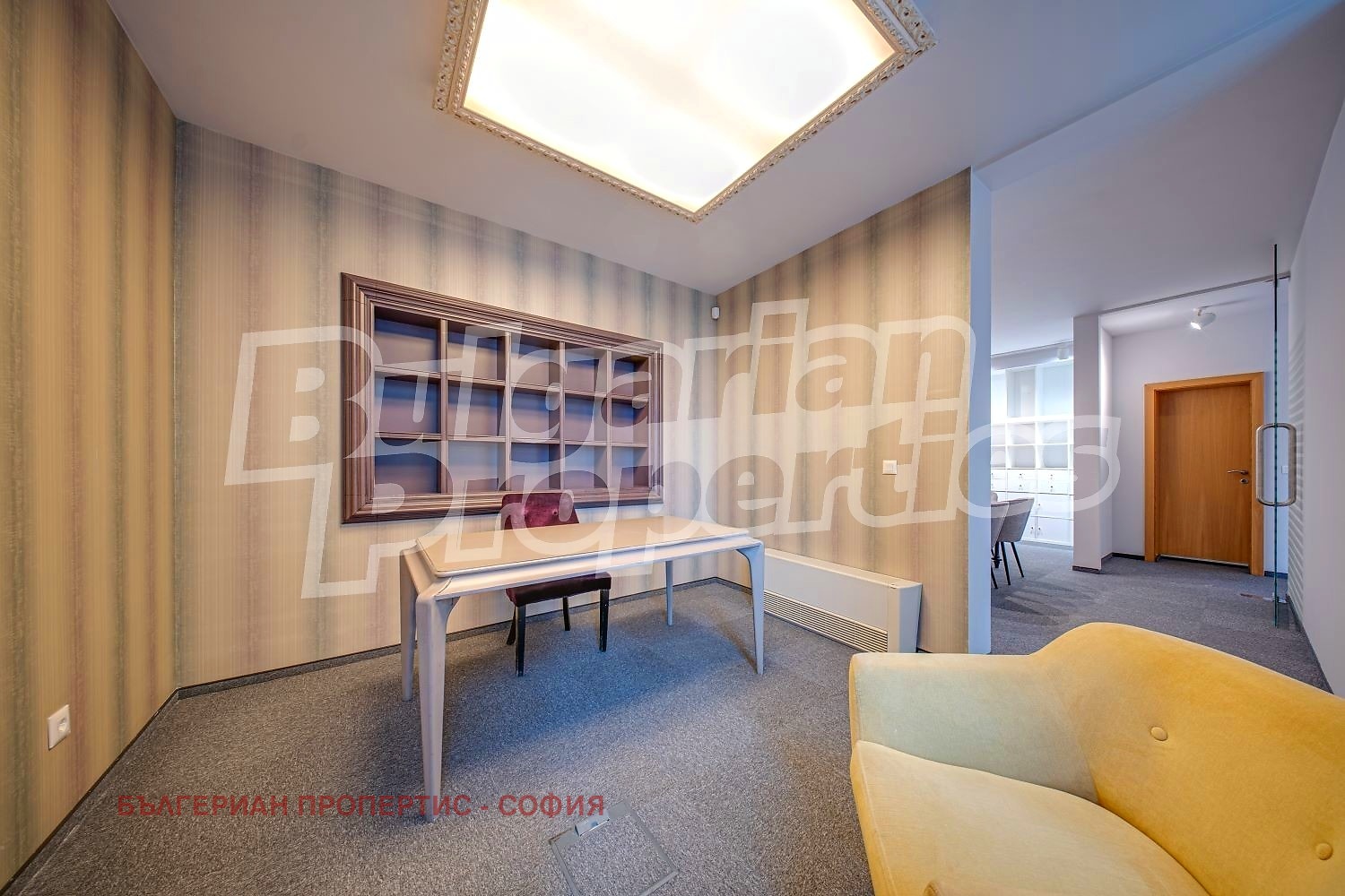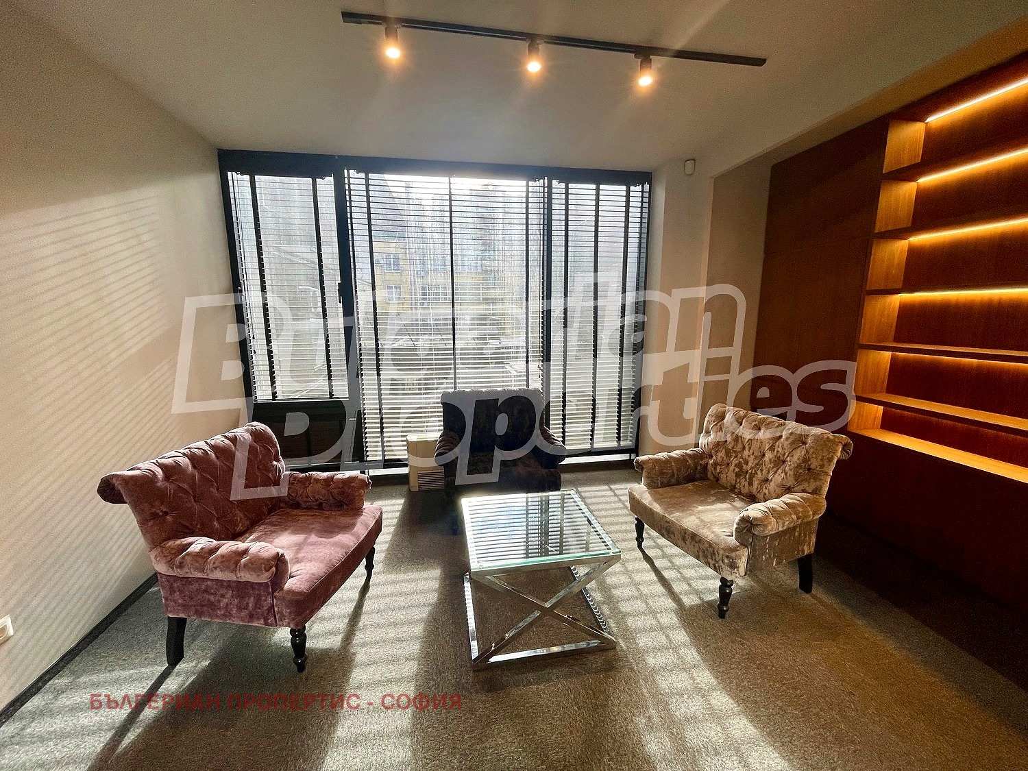 Стъклените преградни стени осигуряват ясно зониране, отлична шумоизолация и усещане за отвореност и светлина. Пространствата са изключително светли, с големи прозорци и външни щори, които позволяват прецизен контрол на естествената светлина през целия ден. Високите тавани, качественото офис осветление и неутралната цветова гама създават комфортна, модерна и представителна работна среда. Подовите настилки са от висококачествен мокет. Отоплението е на ТЕЦ, допълнително има монтиран климатик.