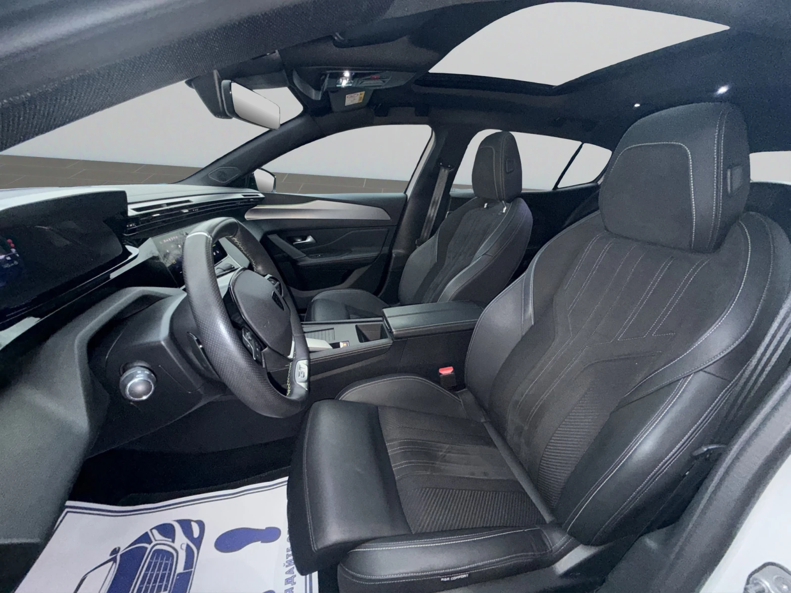 Клиентски автомобил Гаранция до 15. 01. 2029 г. Реф номер: KR100082 Работно време от 09: 00 до 19: 00 Събота от 09: 30 до 16: 30 СИГУРНОСТ * 6 въздушни възглавници (предни / странични / тип завеса ) * ESP + ASR + ABS + EBD + EBA + Следене на налягането на гумите * Isofix фиксатори за детски столчета (x2) на втори ред седалки * Фарове с Peugeot Full LED Technology Matrix Beam с LED дневни светлини, задни LED прогресивни светлини с подпис с 3 следи от нокти на Лъва * Автоматично регулиране на фаровете * Фарове за мъгла * Електрическа ръчна спирачка * SAFETY E-call * Бордно зарядно устройство 3, 7 kW * Кабел за зареждане тип 2 СИСТЕМИ В ПОМОЩ НА ШОФИРАНЕТО И МАНЕВРИРАНЕТО * Разпознаване на пътните знаци * Регулатор и ограничител на скоростта * Предложение за препоръчителна скорост * Асистент за следене на пътната маркировка * Активно предупреждение за неволно пресичане на осевата линия * Предупреждение за бдителността на водача * Активно следене на мъртвата зона * Асистент за спиране при заден ход * Адаптивен автопилот * Активна спирачка за безопасност * Датчици за паркиране на преден и заден ход * Камера за заден ход * Автоматично превключване между дълги и къси светлини ДЖАНТИ, ВЪНШЕН И ВЪТРЕШЕН ДИЗАЙН * Комплект за ремонт на спукана гума * Странични огледала за обратно виждане с основа в цвят черен мат * Радиаторна решетка с фасети в цвета на купето * Дръжки на вратите в цвета на купето * Свръхтонирани задни стъкла с хромирана лайстна * Лого Peugeot на предни калници * PEUGEOT i-Cockpit с 10'' цифров 3D инструментален панел на нивото на очите * Отопляем компактен многофункционален волан, облицован с пълнозърнеста кожа * Електрохромно огледало за обратно виждане без рамка * Преден централен подлакътник с поставка за чаши * Тапицерия текстил / кожа с шев в цвят Adamite Green * Стелки * Механично регулируеми по височина седалки на водача и на пътника до водача * Централен подлакътник на задната седалка с поставка за чаши и отвор за ски * Функция Smart Multidrive за персонализация на цветната тема на амбиентното осветление в купето (табло и врати) КОМФОРТ * Автоматичен двузонов климатроник с високоефективен филтър * Система за следене на качеството на въздуха в купето + Clean Cabin * Електроуправляеми предни и задни стъкла с хромирана лайсна в основата * Акустично ламинирано предно стъкло * Електрически сгъваеми, управляеми и отопляеми огледала за обратно виждане с вградени LED мигачи * Автоматични фарове и чистачки * Автоматично регулиране на светлините * Безключов достъп до автомобила и стартиране на двигателя * Електрическо отваряне на багажника със сензор за крака и детектор за пешеходци МУЛТИМЕДИЯ & НАВИГАЦИЯ * 10'' HD капацитивен екран и програмируеми тъч-бутони i-Toggle Switches , радио, 4 предни високоговорителя и 2 в задната част на купето, MP3, Bluetooth, 4 USB вход тип C и свързана навигация с гласово разпознаване TomTom + SAFETY (B-call / E-call) * Функция Mirror Screen за дублиране на приложенията за смартфон върху сензорния екран на автомобила, съвместим с Apple Car Play и Android Auto * Пакет Driver Sport: персонализиране на таблото с разширени спортни настройки, по-директен педал на газта, по-спортен сервоусилвател, спортна смяна на предавките, усилен и по-спортен звук на двигателя (може да бъде деактивиран) Допълнителни опции: *Visio Park 3 (изглед 360 чрез 4 HD дигитални камери) *Индукционно зареждане на смартфон *Бордно зарядно 7, 4 kW *Електрически отваряем стъклен покрив *пакет Седалки: предни отопляеми и масажиращи