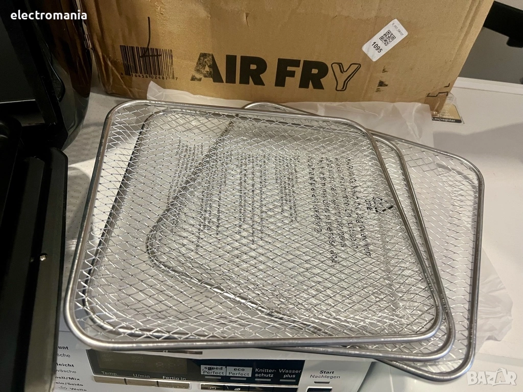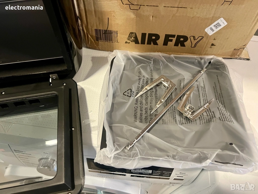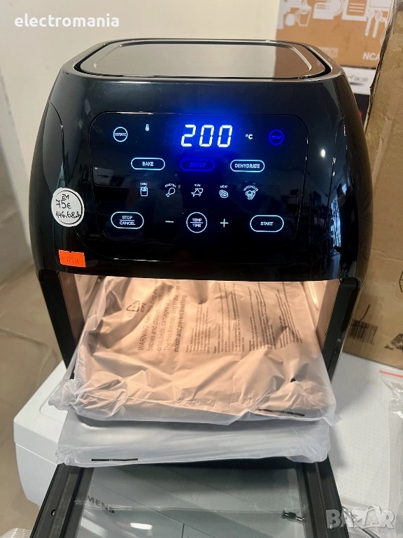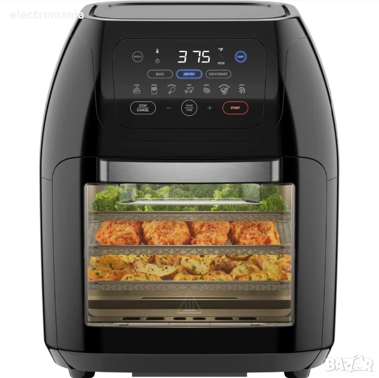Уредът комбинира функциите на еър фрайър, конвекторна фурна, грил с въртящ се шиш и дехидратор. Подходящ е за приготвяне на широка гама от ястия с минимално количество мазнина чрез технология за бърза циркулация на горещ въздух.
