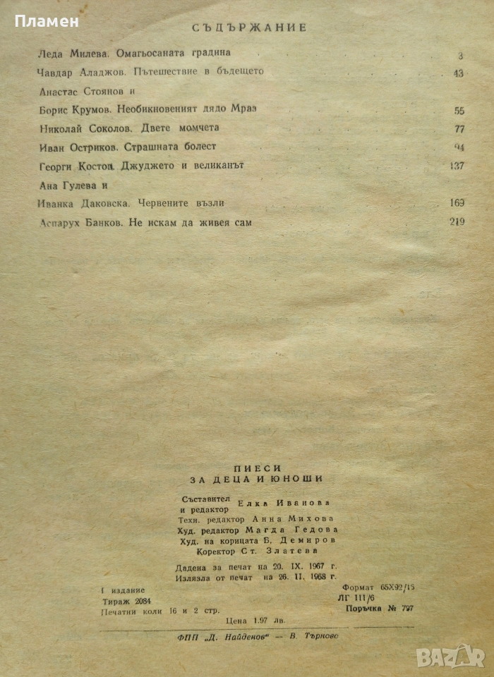 Пиеси за деца и юноши. Сборник -издание 1968г. в 258 страници -28 евро.