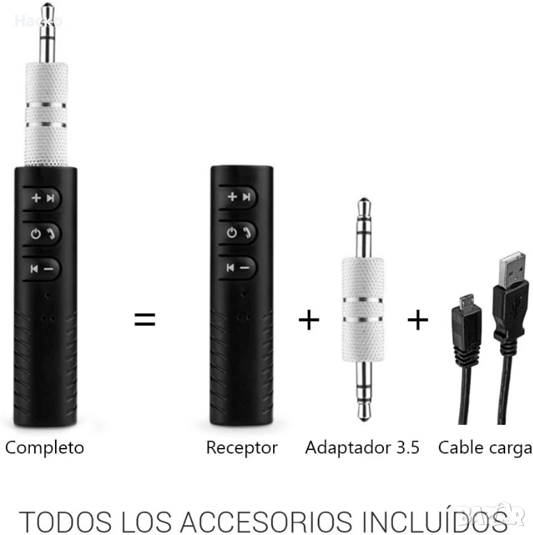 - 1 x Универсален 3,5 mm Bluetooth аудио приемник с микрофон.