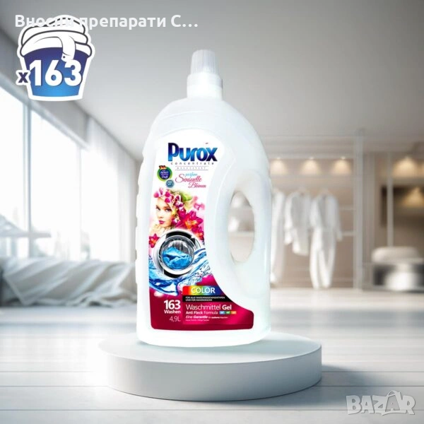 Препарат за пране Purox, универсален, течен, чувствени цветя, 4.9 л, 163 пранета.