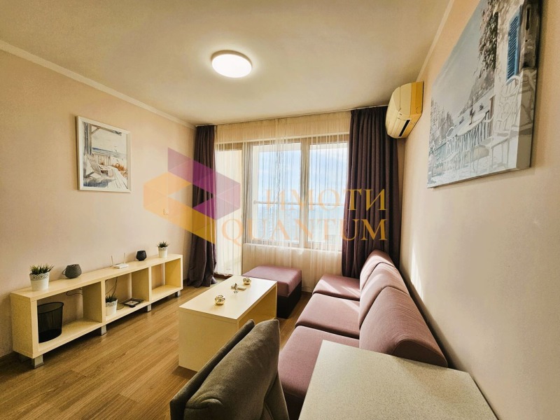 Апартаментът се състои от дневна с кухня, спалня, килер, гардеробна, баня с тоалетна, антре и панорамна тераса. Напълно обзеведен и оборудван с всичко необходимо, включително два климатика, съдомиялна машина и интернет.