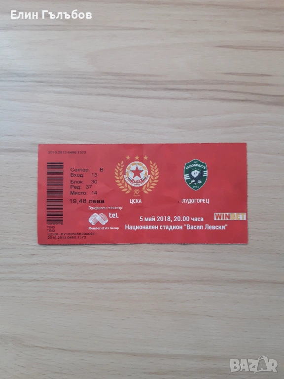 Билета е от мача за първенството с отбора на Лудогорец игран на 05.Май.2018-та год. и завършва при равен резултат 0:0.