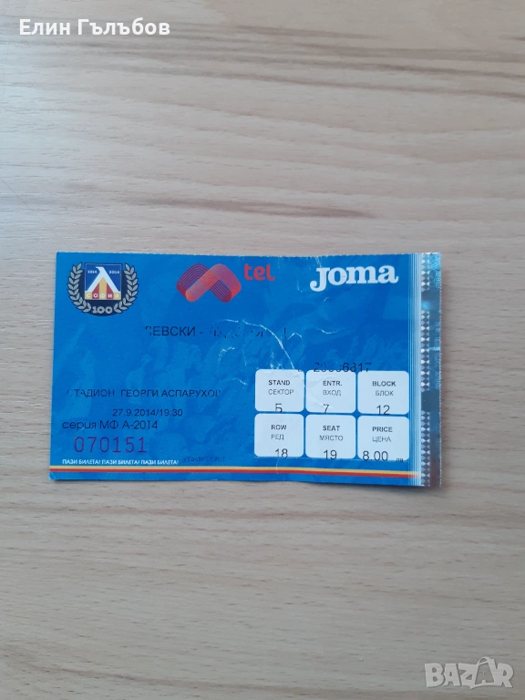 -4.Билет от 70 годишният Юбилей на отбора на ЦСКА.