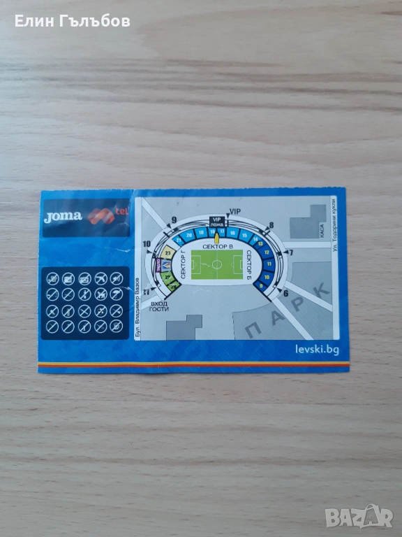 Цената на билета от мача Левски - Лудогорец (3:2) e - 6.00 (шест) Евро.