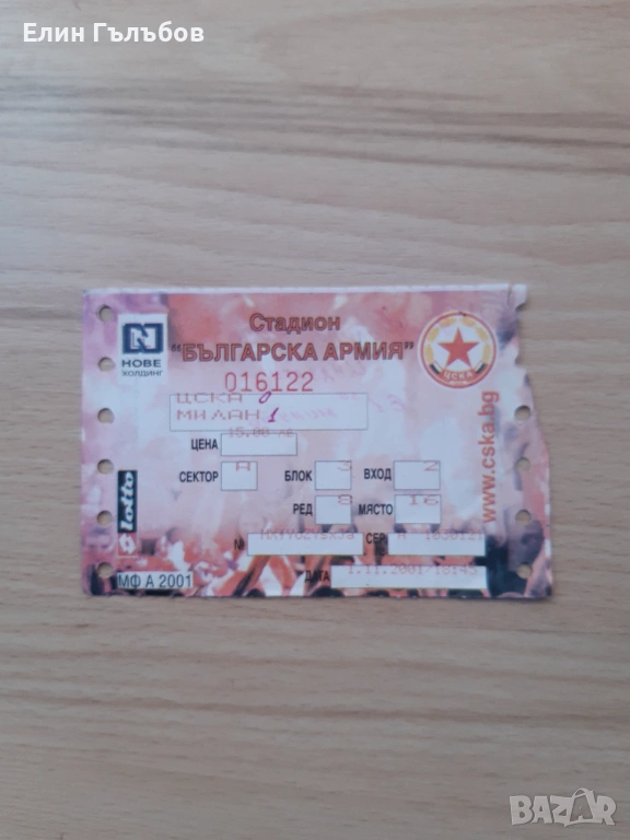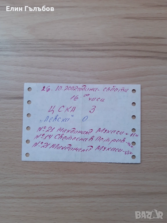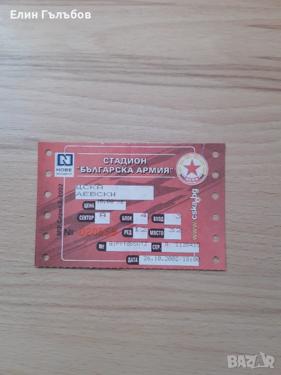 Билета не е късан и е от мача за първенството.Мача е игран на 26.10.2002-ра год. и завършва при категоричен резултат 3:0 за ЦСКА с голове на Макдоналд Мукаси (в 11-та и 55-та минути) и Светослав Петров (в 45-та мин.).